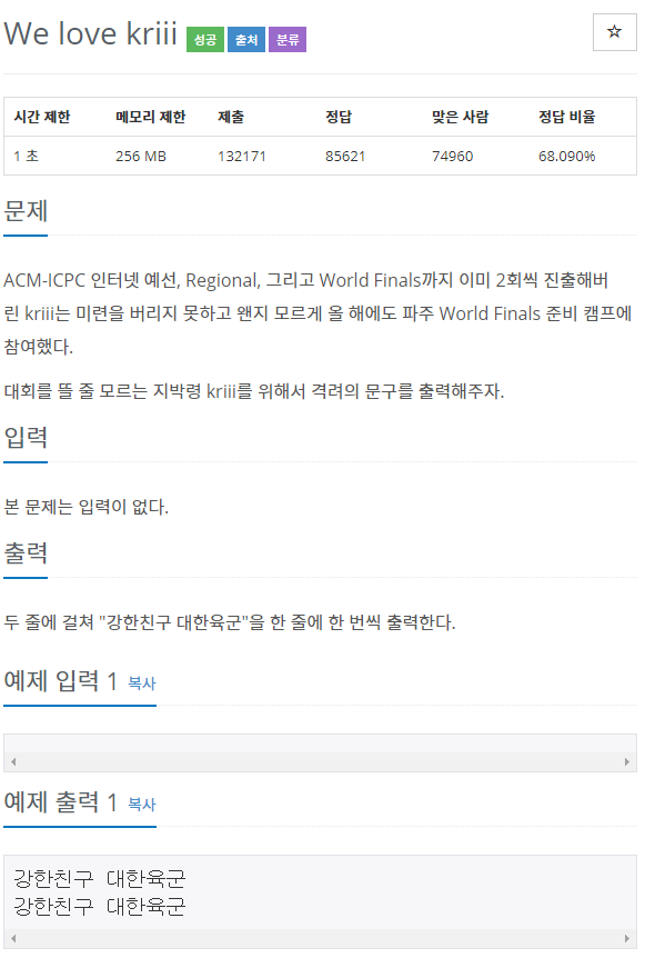 백준 2557 문제에서 출력문을 System.out.println();를 사용했다면 큰 차이가 없는 문제입니다.