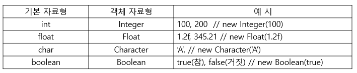 그리고 추가로 기본 자료형은 객체 자료형과 다르기 때문에 자바에서는 Wrapper 클래스라는 걸 이용해서 기본 자료형도 객체 자료형처럼 사용할 수 있도록 만들어놓았습니다.