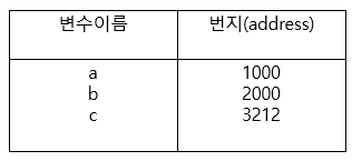 - 변수명 a, b, c와 각 변수의 임의의 번지를 변수 테이블에 저장합니다.